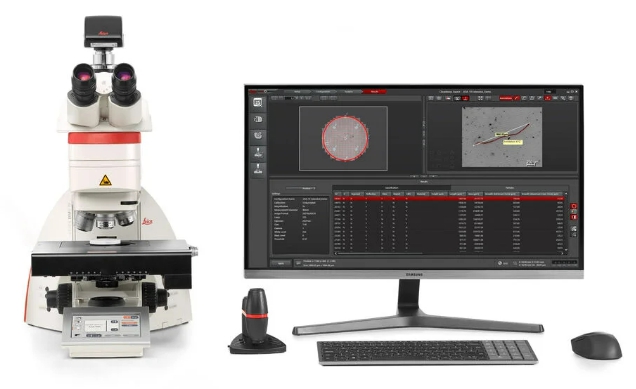 DM6 M 현미경, K3 카메라 및 Cleanliness Expert 분석 소프트웨어.