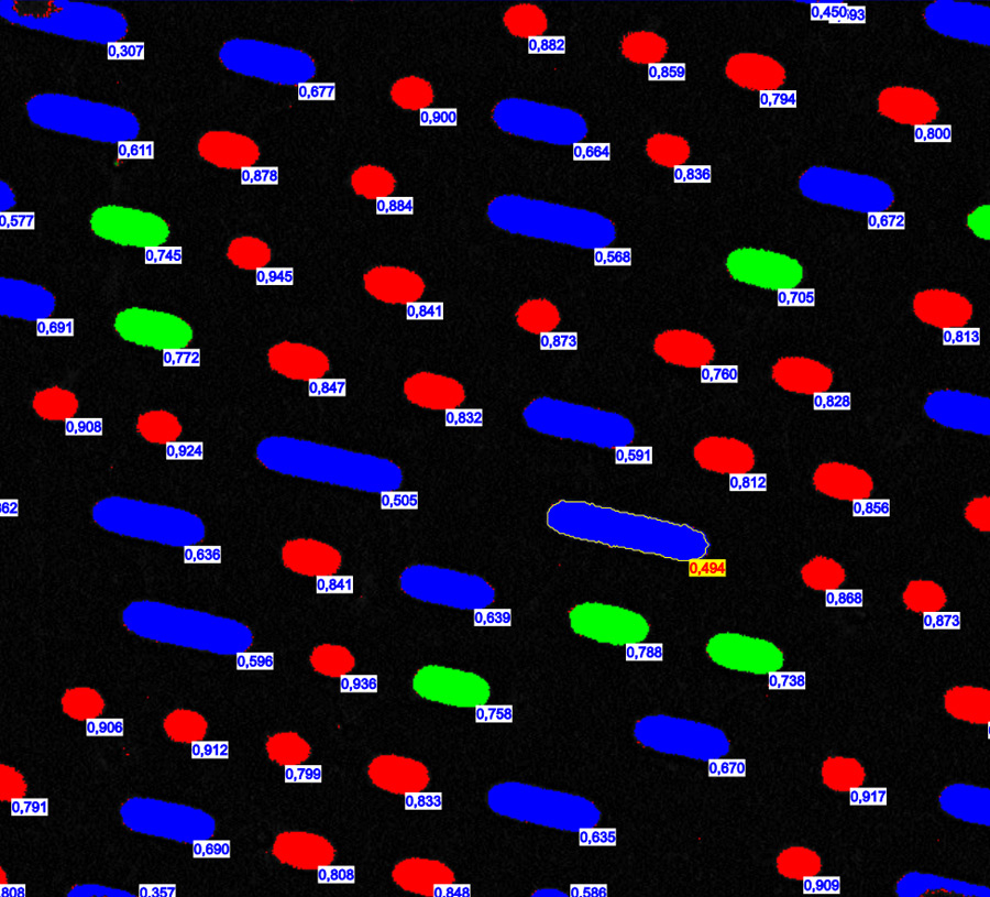 식별된 객체는 LAS X 2D Analysis 모듈에서 제공하는 파라미터를 기준으로 분류할 수 있습니다. 이 소프트웨어는 기존 방법 외에 사용자 정의 파라미터의 생성을 지원하는 프로그래밍 가능 분류자도 제공합니다. 마우스 클릭으로 하나 이상의 클래스로 이루어진 몇 가지 객체를 선택하면 2D Analysis 모듈이 자동으로 모든 관련 파라미터를 결정할 수 있습니다. 특정 분류 기준이 설정되면 향후 분석을 위한 사용자 설정이 최소화됩니다. LAS X Multichannel Analysis 옵션을 사용하면 객체를 병렬로 감지 및 분류할 수 있고, 일련의 논리 연산자(AND, OR, XOR 등)를 사용해 개별 결과를 결합하여 다양한 측정 조합을 얻을 수 있습니다. 강력한 분석 기능 덕분에 LAS X 2D Analysis/Multichannel Analysis 모듈은 품질 관리와 고급 연구에서 수행되는 많은 작업에 이상적인 도구입니다.