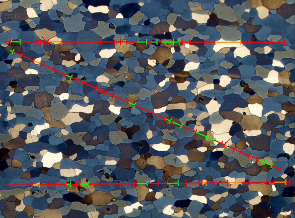 LAS X Grain Expert는 ASTM E112, DIN/EN/ISO 643, GOST 5639 및 JIS G0551과 같은 금속 조직 크기 분석을 위한 여러 국제 표준을 다루고 있습니다. 파생 또는 관련 표준(예: ASTM E1382 또는 ASTM E930)은 위에서 언급한 주요 표준 내에서 입자 크기 분석을 위한 다양한 기술적 접근 방식을 설명합니다.
