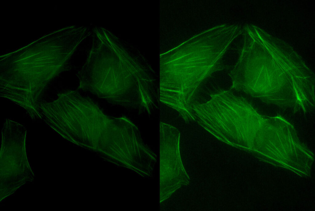 스마트 ROI 기능을 사용하면 카메라의 대형 센서를 사용하여 C 마운트 광학장치 축소, 유효 픽셀 크기 증가, 감도 향상, 활성 센서 영역 자동 자르기를 통한 형광 이미징 성능 향상이 가능합니다.