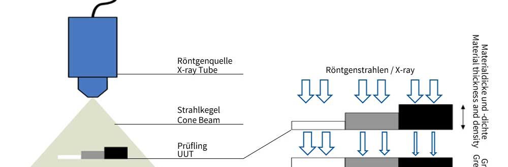 전자 어셈블리 또는 부품의 자동 X선 검사에서 UUT는 방사선 차단 하우징에 있는 원뿔 모양 X선 빔에 의해 투과조명됩니다. 확대된 X선 이미지는 아래의 검출기에 기록됩니다. X-Ray 검사 시스템은 생산 라인의 일부(인라인)로 사용하거나 별도로 설치된 검사 아일랜드(오프라인)로 사용할 수 있습니다. 두 경우 모두 테스트 대상은 벨트 모듈을 통해 공급되고 검사 후 추가로 운반됩니다. 완전 자동 X-Ray 프로세스의 지속 시간은 생산 라인의 사이클 시간에 결정적인 영향을 미칩니다. 인라인 절차는 대량 생산에 자주 사용됩니다. 프로토타입 분석의 경우, 소량 또는 무작위 샘플로 제한되는 경우 X-Ray 검사 시스템은 수동 시스템으로도 사용됩니다. 이 경우 기계는 수동으로 로드 및 언로드되며 생산 라인에서 분리됩니다.