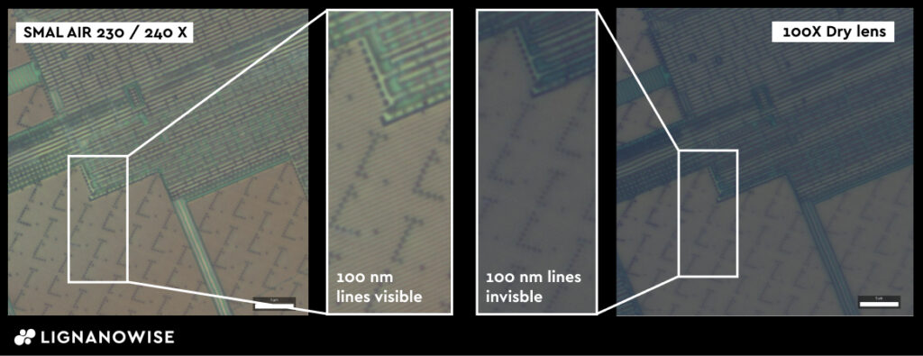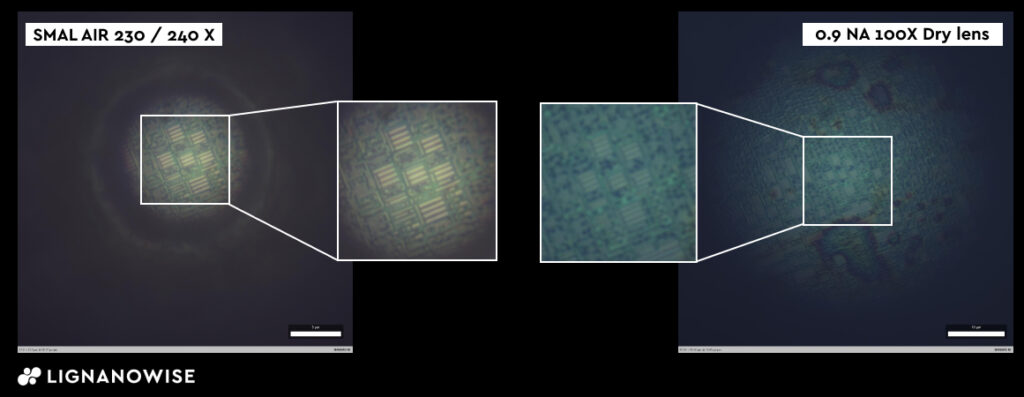 당사의 건식 SMAL제품은 주변 공기 환경에서 작동하는 유일한 초고해상도 렌즈로, 80nm 이하의 해상도에 도달합니다.