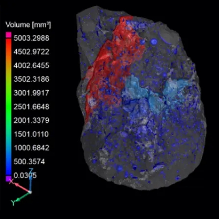 시공물리학 : 콘크리트 조각에 대한 다공성 분석을 수행했습니다. 이 콘크리트 샘플의 직경은 120mm입니다. 다공성을 분석하기 위해 스캔을 수행하여 균열, 구멍, 기포를 확인했습니다.