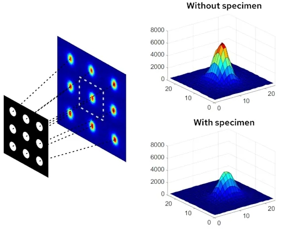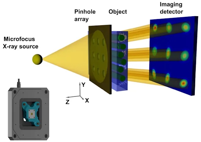 특수 설계된 핀홀 어레이를 사용하여 표본을 통과하는 여러 개의 미세한 평행 X선 빔을 생성합니다. 한 번의 스캔으로 흡수, 위상차, 암시야 산란을 포착하여 기존 흡수 기반 X선 이미징에서는 볼 수 없는 구조적 세부 정보를 드러냅니다.